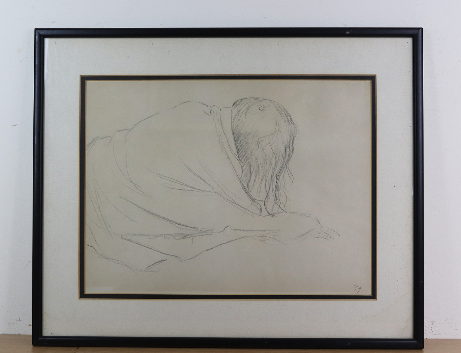 Unglazed for shipping, mounted and framed.