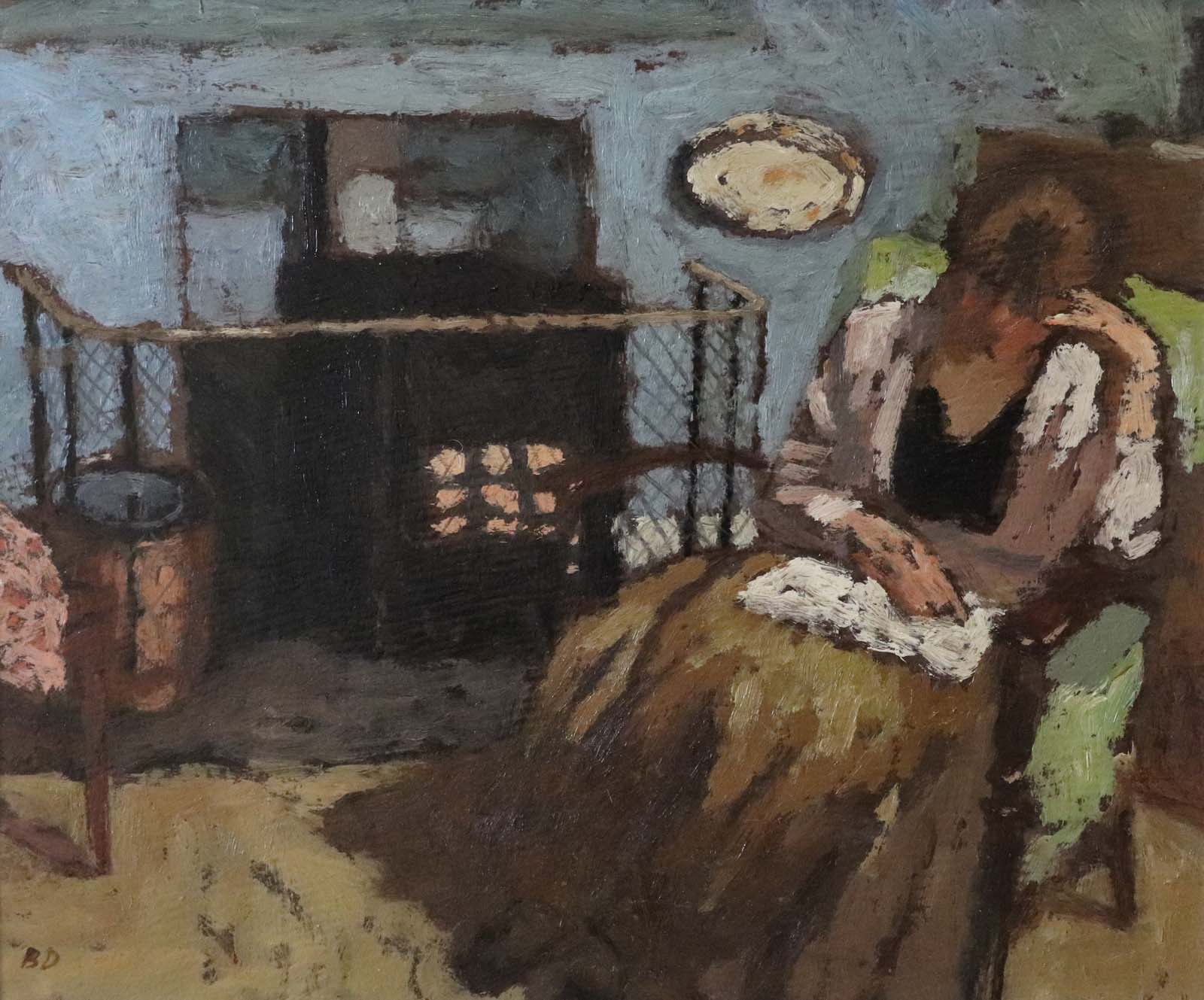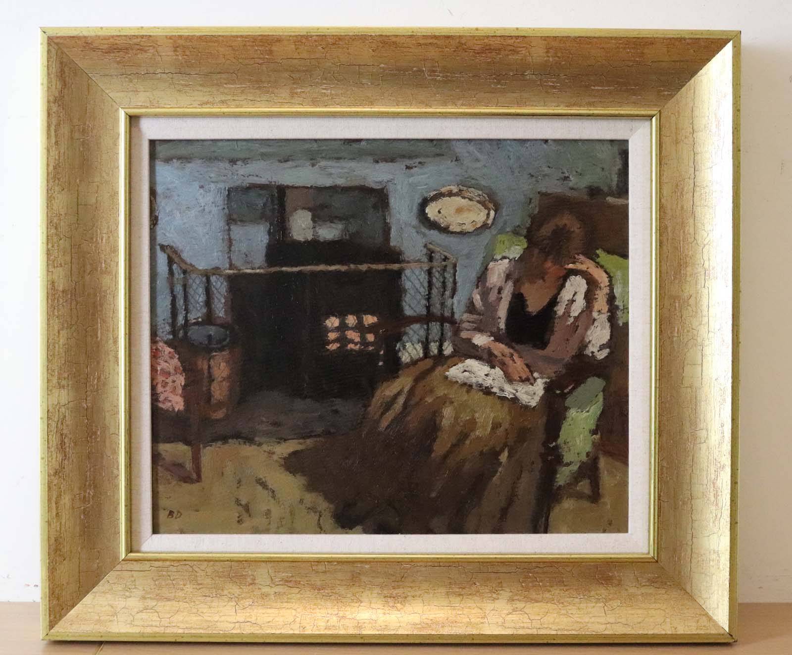 signed with initials; signed and titled on label on reverse