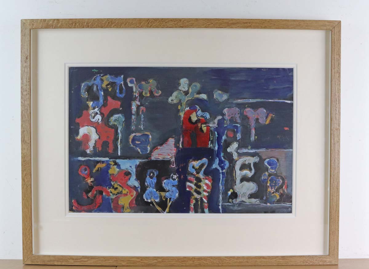 Unglazed for shipping, mounted and presented in a fine handfinished oak frame.
