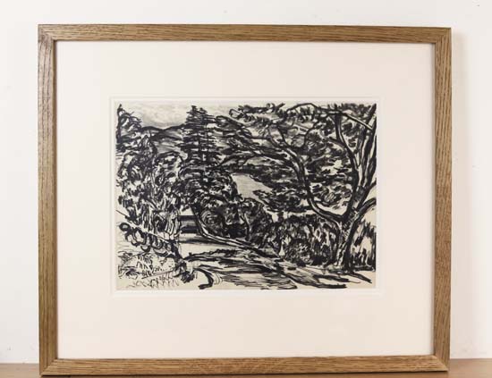 Unglazed for shipping, mounted and presented in a fine handfinished oak frame.